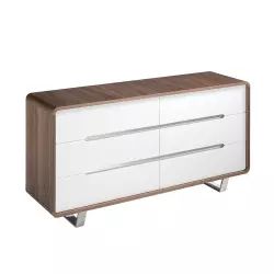 Commode 6 tiroirs blanche et bois façon hêtre - ID Market