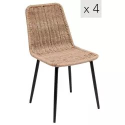 Chaise en bois clair, tissu beige et rotin (lot de 2) - Rendez-Vous Déco