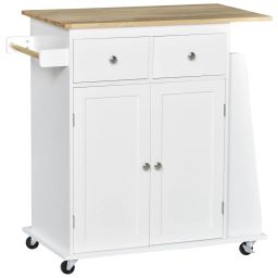 Desserte de cuisine multi rangements MDF blanc hévéa - Homcom