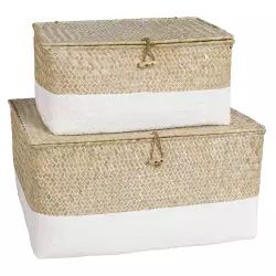 Set de 3 boîtes ovales en pandan beige - Decoclico
