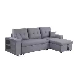 Canapé 4 places convertible coffre noyer tissu tramé gris anthracite - Sia Home