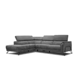 Le canapé d’angle gauche Roden est un grand canapé dans un style contemporain conçu pour accueillir 5 personnes. Son style industriel epuré ajoutera à votre intérieur une touche design, tout en vous garantissant une relaxation maximale. L'expérience de détente est complétée par des appuis-tête mobiles qui peuvent être réglés à n'importe quel angle afin d'ajuster parfaitement la position assise à vos préférences ou besoins actuels.Le canapé d'angle Roden donne l'impression d'un meuble léger flottant au-dessus du sol, grâce à un piètement subtil et élégant en métal laqué noir. L’armature des pieds remonte subtilement sur le canape pour venir soutenir les accoudoirs. La stabilité de l'ensemble est assurée par des pieds spéciaux supplémentaires montés sous l'assise.Le canapé d’angle Roden se distingue par son angle placé à gauchee. Cela veut dire que lorsque vous regardez le canapé, face à lui, la méridienne sera à votre gauchee.Le canapé d’angle Roden est disponible en plusieurs coloris, ce qui permet de l'intégrer harmonieusement dans n'importe quel style d'intérieur. La structure du canapé se compose de panneaux de particules, de bois massif et de panneau de fibres, complétés par des ressorts en métal. Son assise se compose d'une mousse polyuréthane de densité N 30 kg/m3 + ouate 250 g/m2. Le dossier du canapé se compose d'une mousse polyuréthane de densité N 25 kg/m3 + ouate 150 g/m2. Le canapé Roden dispose d’une garantie de 2 ans. Dimensions: 281 cm (largeur) x 103/228 cm (profondeur) x 82cm (hauteur)
