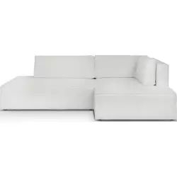 Canapé d’angle gauche convertible coffre tissu tramé crème 260cm