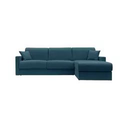 Canapé d’angle MARIA SCANDINAVE VELOURS réversible et convertible avec coffre – Bleu pétrole – 229 x 146 x 91 cm – Usinestreet - Loungitude