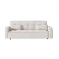Canapé droit convertible 3 places en velours beige - Lisa Design