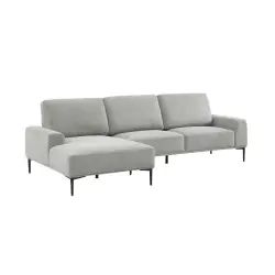 Canapé d’angle gauche convertible coffre tissu tramé crème 260cm - Sia Home