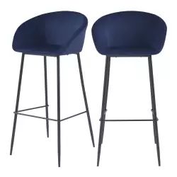 Chaise de bar 75 cm en velours bleu (lot de 2) - Rendez-Vous Déco