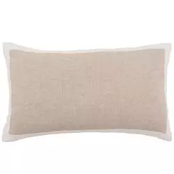 Housse de coussin en coton et lin mélangés blanc et beige avec galon 40×40 - Maisons du Monde