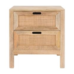 Table de chevet 2 tiroirs en bois de manguier et cannage - Rendez-Vous Déco